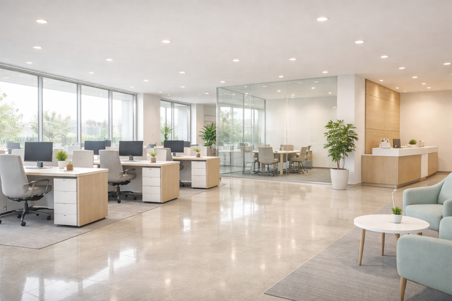 Nous assurons l'entretien de bureaux individuels, open spaces, salles de réunion, espaces d'accueil, zones de pause et sanitaires pour offrir à vos équipes un environnement propre et agréable.